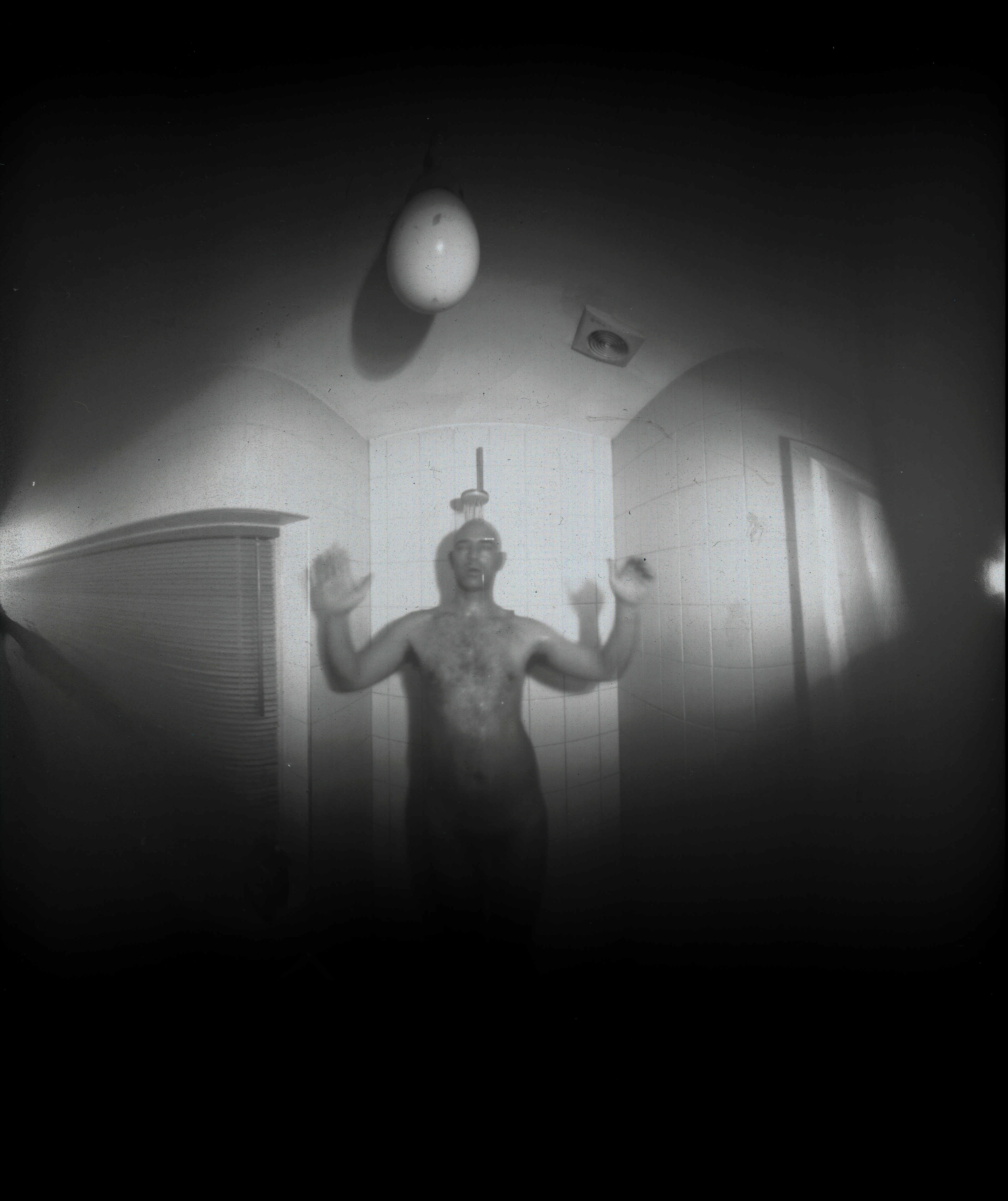 See me (nearly get) shot under the shower.